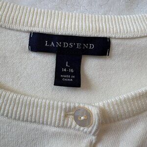 Lands End Womens Ivory Button-Down White Cardigan Sweater Size Large (14-16 )