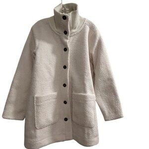 Lands' End Women's Ivory Sherpa Teddy Coat L Winter Overcoat