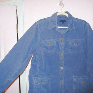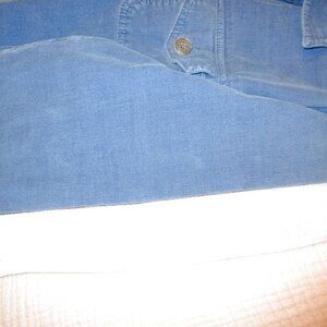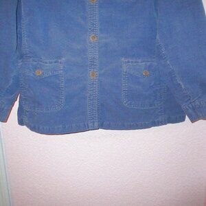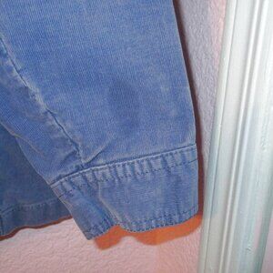 Blue corduroy button-up with long-sleeves and 4 pockets.