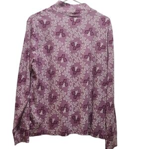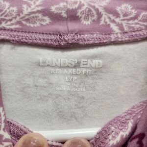 Lands End Womens L Petite Purple Floral Mock Turtleneck Long Sleeve Cotton Tee