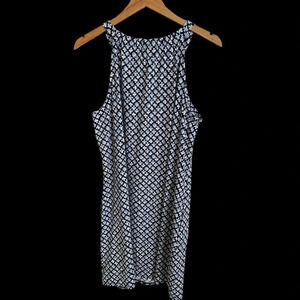 Lands End Womens Large 14 16 Blue Print High Neck Keyhole Active Dress Summer L