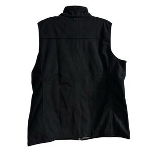 This Lands’ End women's vest in size large features a basic jacket style with a full zip front and sleeveless design. Made from soft polyester fleece, it is OEKO-TEX certified, ensuring it meets high safety and environmental standards. The vest is black and manufactured in Vietnam. It is pre-owned with a slight imperfection on the material, as shown in pictures. Keywords: Lands’ End, women's vest, large, polyester, fleece, black, sleeveless, full zip, basic jacket, OEKO-TEX, Vietnam, pre-owned, soft material, regular size, imperfection.