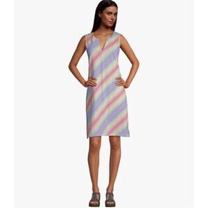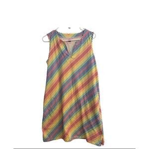 Lands' End Womens Large Pride Rainbow Striped Tank Dress Sleeveless Cotton New