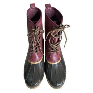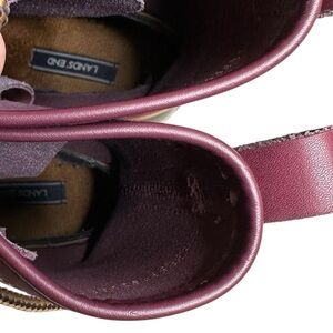 Lands End Women's 502426 Unlined Leather & Rubber Duck Boots Ankle Lace Up Deep Claret