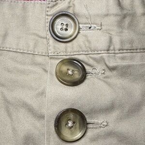 Chic light khaki colored skort featuring stylish buttons. Ideal for everyday wear.