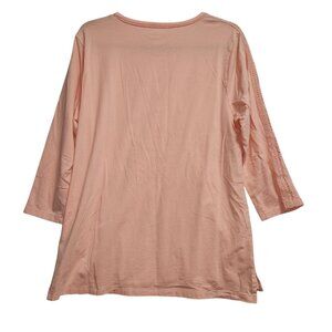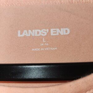 This Lands' End tunic offers a relaxed fit with crochet detailing on the sleeves, adding a touch of elegance to everyday wear. Made from breathable materials, it's a comfortable and stylish option for casual outings or lounging at home. The light pink color enhances its feminine appeal.