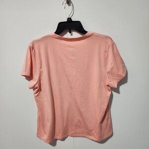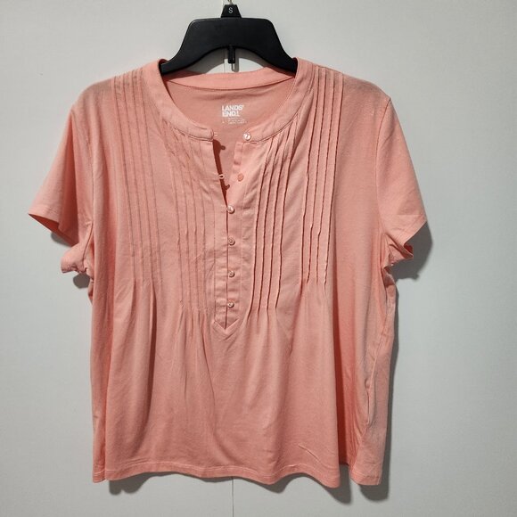 Lands' End Women's Light Weight Short Sleeve Top Shirt Pleats Pink Peach Large