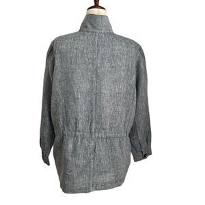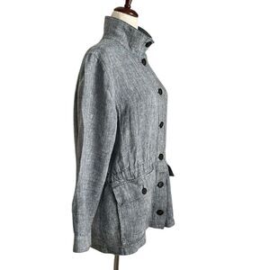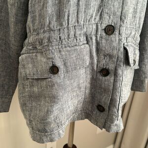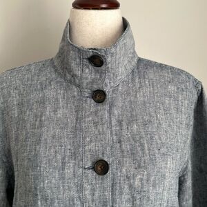 Land's End Women’s Linen Button Down Jacket in Indigo Front Pockets Size Large