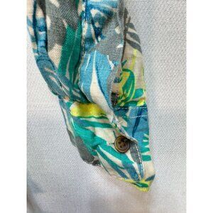 Lands End Womens Linen Button Up Shirt Size ST Green Tropical Long Sleeve Casual