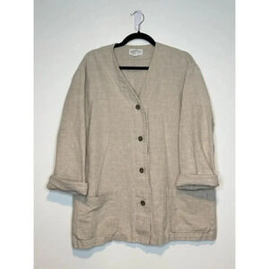 Lands End Womens Linen Buttton Down Lightweight Jacket Lagenlook SIZE xL