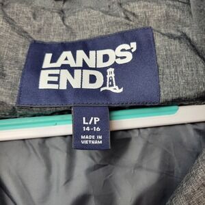 Keywords: Lands' End, womens coat, down coat, puffer coat, winter coat, long coat, faux fur hood, gray coat, insulated coat, warm coat, L/P, petite size, outerwear, winter apparel, ladies coat