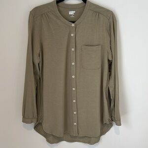 Lands End Womens Long Sleeve A-line Tunic Button Up Top Sunwashed Olive Medium.