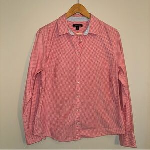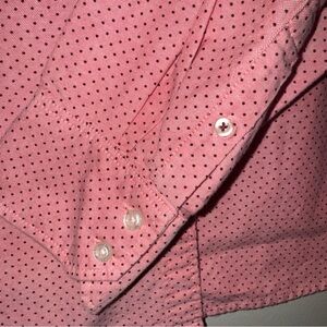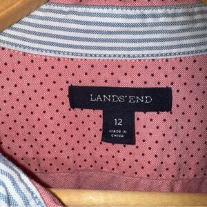 Lands End Women’s Long Sleeve Button Up Shirt Pink with Black Dots Petite 12P