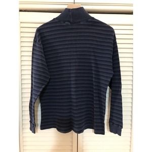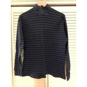 Lands End Womens Long Sleeve Mock Neck Striped Medium 10-12 Blue
