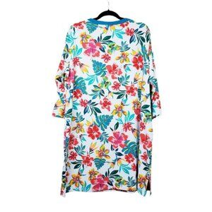 Lands End Womens Long Sleeve White Tropical Beach Swim Cover Up Dress Size XL