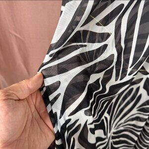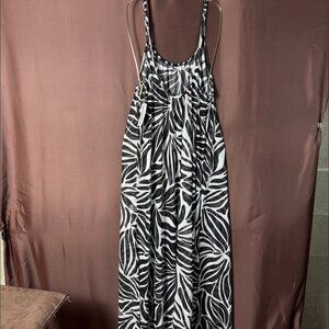 Lands' End Women's M, L Mesh Scoop Neck Swim Cover-up Maxi Dress Black/White Pl