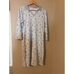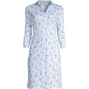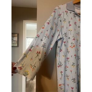 Lands End Women's M Popover Cotton Shirt Dress Gingham Plaid Floral Cottagecore