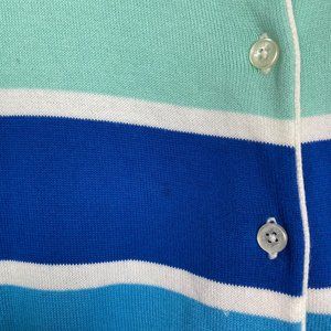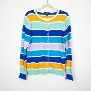Lands' End Women's M TALL Purple Orange Striped Button Up Cotton Cardigan