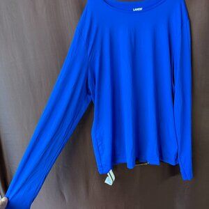 Lands' End Women's M-2X Long Sleeve Crewneck Swim Rash Guard Electric Blue Tee Shirt