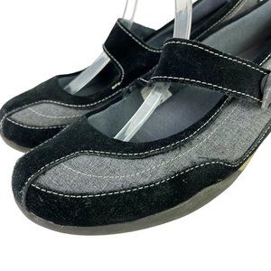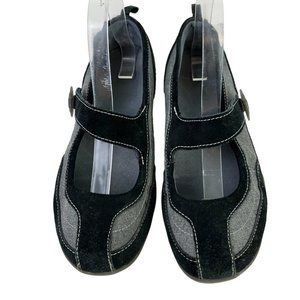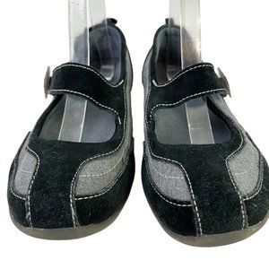 Lands End Womens Mary Janes Loafers Flats Sporty Casual Gray Black Shoes sz 8.5