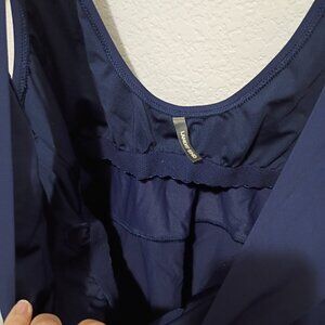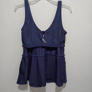 Lands' End Women's Modest Tie Front Peplum Tankini Top Navy Size 14 D