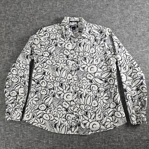 Lands End Womens Monochrome Floral Long Sleeve Button Up Size 10P Petite Casual