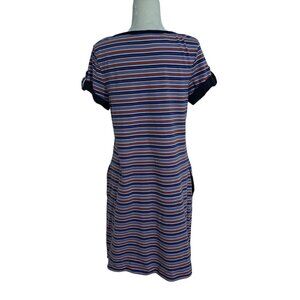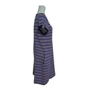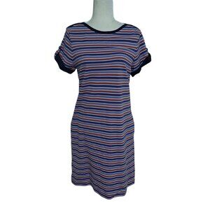 Lands' End Women's Nautical Striped Cap Sleeve Shirt Dress Blue Multi Vacation M