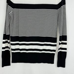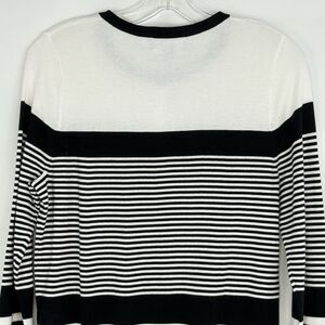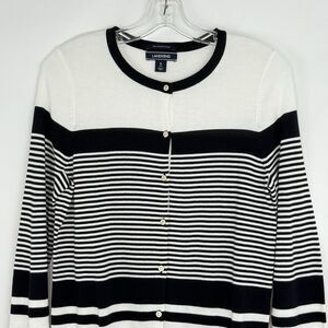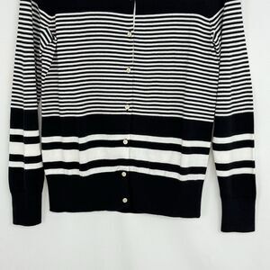 Lands End Womens Nautical Striped Cardigan Small Black White 100% Supima Cotton