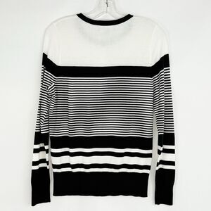 With a classic black and white striped pattern, tight-knit construction, and long sleeves, this cardigan is perfect for all seasons.