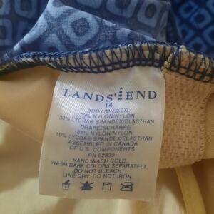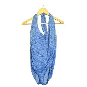 Lands End Womens Navy Abstract Print One Piece Halter Style Swim Suit Size 14