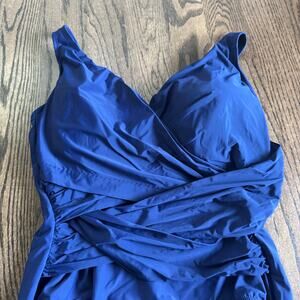 Lands End Womens Navy Blue Slimming One Piece Swim Suit Plus Size 16W DDD