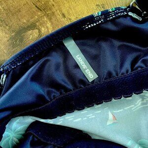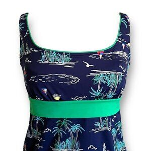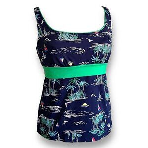Lands End Womens Navy Blue Tankini Top Sz 8 Underwire Bra Sailboat Island Print