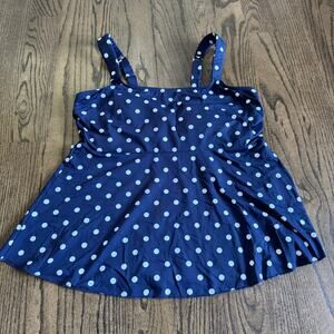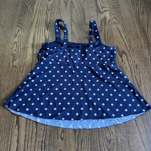 Lands End Womens Navy Blue White Polka Dot Tankini Swim Suit Top Size Medium DD