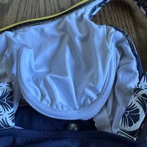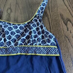 Lands End Womens Navy Blue Yellow Underwire Tankini Swim Suit Top Size 14