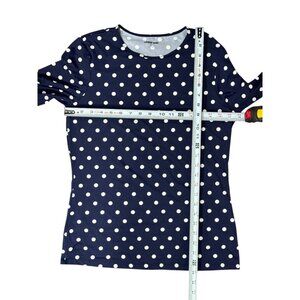 Lands End Womens Navy Long Sleeve Polka Dot Shirt S/L Stretchy Fabric Light Top