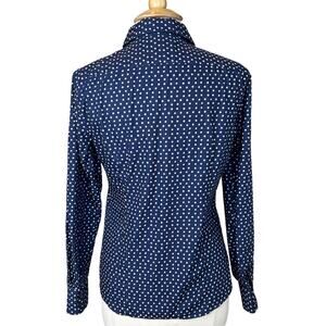 Lands' End Womens Navy Polka Dot No-Iron Supima Cotton Button-Up Shirt 10