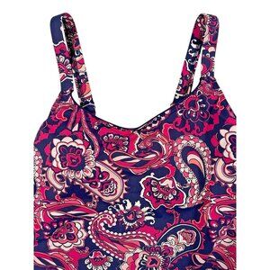 Lands' End Women's Navy/Pink Paisley Square Neck Tankini Top SIZE-6