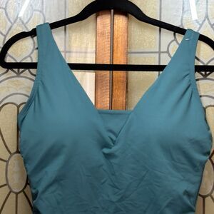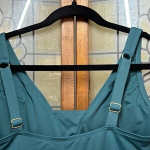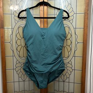 Lands End Women's One Piece Swimsuit Large Teal Green Rushed UPF50 Beach Size L