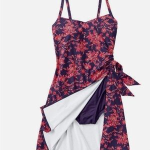 Lands' End Women's One Piece Swimsuit - Navy and Pink Floral