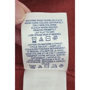 Sweater is in excellent preowned condition. There are no stains, rips, holes or other issues. Color is bright, not faded. To me, the color is more of a rust or red-orange color. It is clean and ready to wear.
