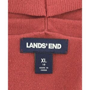 The Lands End Women's Open Cardigan in size XL is a stylish and versatile sweater perfect for casual occasions. This rust red cardigan features long sleeves, a solid pattern, and a cozy knit fabric made of cotton. With a bohemian and colorful theme, this cardigan highlights nature and outdoor elements, making it a great addition to your fall, winter, or spring wardrobe. The open design and pockets add both functionality and a trendy touch to this wardrobe essential from Lands' End.