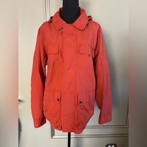 Lands’ End Women’s Orange Hooded Utility Lightweight Jacket Size Medium 38-40