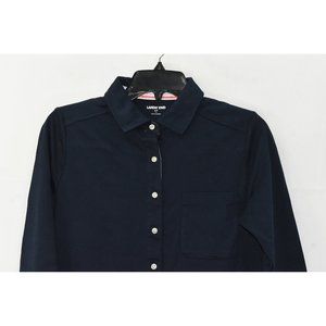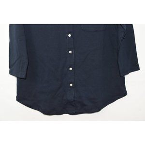 Lands' End Women's PS Petite Size 3/4 Sleeve Jersey Button Down Top, Navy, NwoT