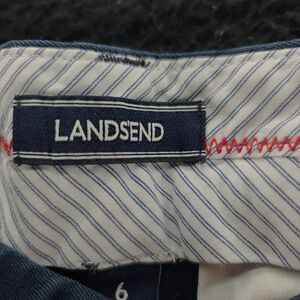 Experience exceptional comfort and style with the Lands' End Women's Blue Pants in Size 6. Made from a blend of cotton, these straight leg, mid-rise pants feature button, zip, pockets and a stretchable design.