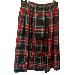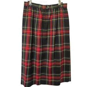 Lands End Women's Lined Wool Tartan Plaid Midi Skirt