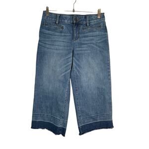 Lands’ End Women’s Petite 6 Mid Rise Wide Leg Crop Jeans Denim Raw Hem Stretch