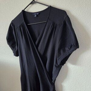 Lands End Womens Petite Large Black Wrap Dress Short Sleeve Cotton Blend