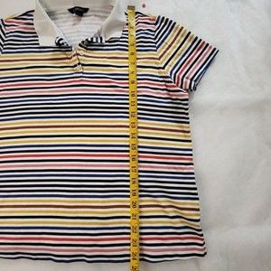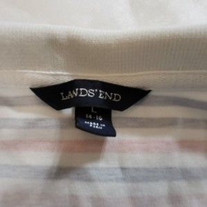 Lands' End Women's Pima Cotton Polo Stripe L 14/16 Multicolor