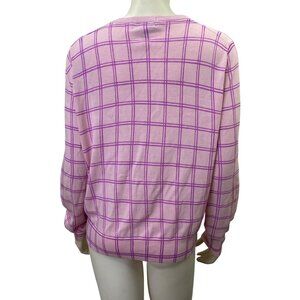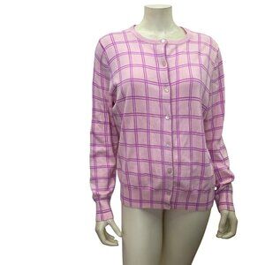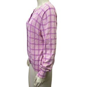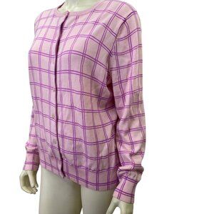 Lands End Womens Pink Plaid Button-Up Cardigan Sweater Large 100% Supima Cotton