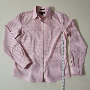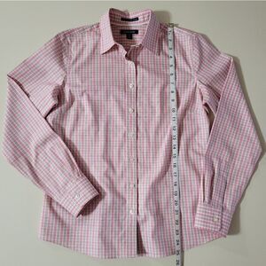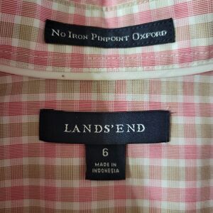 Lands' End Women's Pink Plaid Long Sleeve Button-Down No Iron Pinpoint Shirt